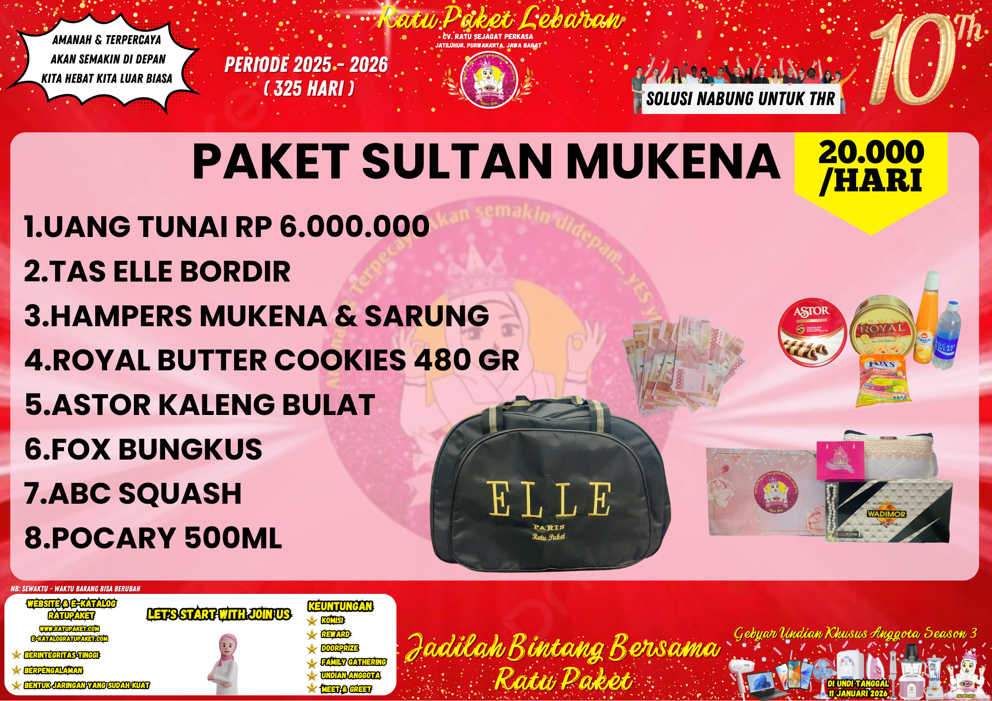 Sebagai bentuk apresiasi untuk seluruh anggota yang telah setia dan amanah, Ratu Paket Lebaran menghadirkan program Undian Khusus Anggota dengan berbagai hadiah menarik